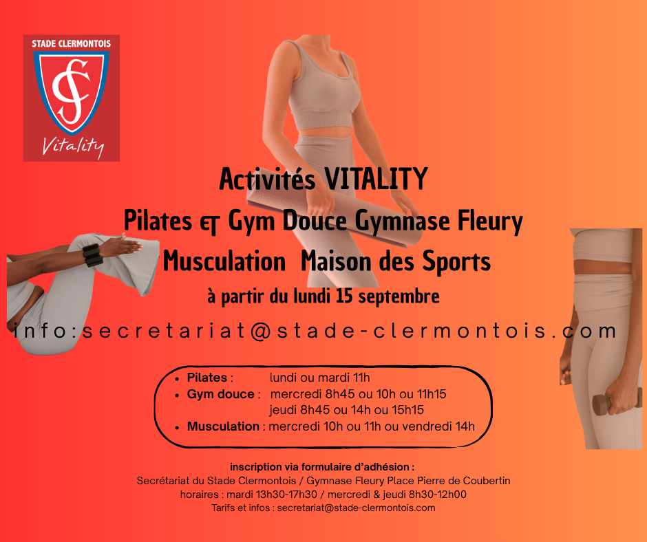 Inscription : Secrétariat du STADE CLERMONTOIS OMNISPORT – Gymnase Fleury